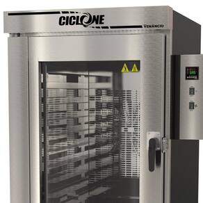 O Forno Turbo A Gás Venâncio Ciclone 10 Esteiras é um equipamento robusto e eficiente, perfeito para padarias, pizzarias, restaurantes e confeitarias que buscam máxima produtividade. Com seu interior em aço inoxidável e exterior em aço carbono com pintura epóxi, ele garante durabilidade e fácil limpeza, mesmo em ambientes de uso intensivo. Este forno turbo a gás é ideal para assar pães, bolos, pizzas, biscoitos e outros alimentos, distribuindo o calor de forma uniforme graças ao sistema de inversão do ventilador a cada 3 minutos. Suas 10 esteiras ajustáveis permitem trabalhar com diferentes tamanhos de assadeiras (60x80, 58x70, 45x65 e 40x60), oferecendo a maior capacidade produtiva da linha.