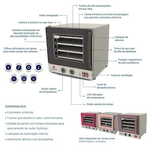 Com ele, você pode preparar uma ampla variedade de alimentos, desde assados suculentos até deliciosas sobremesas. Esse forno turbo elétrico é perfeito para assar pizzas, lasanhas, pães de queijo, bolos, salgados, carnes e muito mais. Sua tecnologia avançada garante um cozimento uniforme e rápido, proporcionando resultados incríveis em cada preparo.