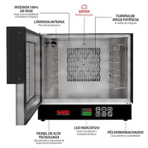 O Forno Turbo Elétrico SARO FTD11 é a escolha perfeita para quem busca potência e eficiência na cozinha. Equipado com 4 Esteiras e uma resistência de 2.500W, ele permite assar seus alimentos rapidamente, mantendo o sabor e a textura ideais. Com seu interior de Inox e Painel Digital, oferece praticidade e controle preciso da temperatura, além de garantir economia e segurança durante o uso. Adquira agora o Forno Turbo Elétrico SARO FTD11 e tenha uma cozinha mais eficiente, econômica e livre de fumaça, elevando o nível dos seus preparos!