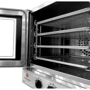 Este equipamento é utilizado para assar pizzas, lasanhas, pães de queijo, bolos, salgados e carnes, proporcionando um cozimento uniforme.