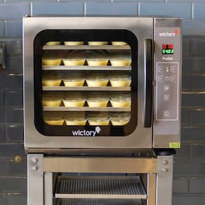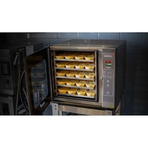 - Construção em aço inoxidável 304 e 5 assadeiras lisas em alumínio, garantindo resistência e durabilidade; - Alta produtividade, permitindo o preparo de grandes quantidades em menos tempo; - Timer digital com tempo ajustável até 99 minutos; - Controle de temperatura ajustável até 250 C com rápida retomada; - Sistema de vapor automático com 4 níveis de intensidade ou modo sem vapor; - Cocção por convecção de ar forçado, garantindo assados mais rápidos e uniformes; - Suportes internos desmontáveis para facilitar a higienização; - Instalação simplificada; - Garantia de 1 ano; - Capacidade produtiva por fornada: 80 pudins (de 120g em 45min) 20 pudins (de 500g em 55 minutos) 10 pudins (de 1kg em 65 minutos).