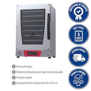 - Maximize a eficiência da sua cozinha com o Forno Turbo Elétrico Progás PRP-008 Plus Vermelho 8 Esteiras 220V!