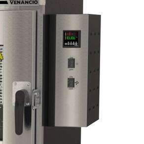 Além disso, o isolamento térmico em lã de rocha (75mm nas laterais, teto e fundo, e 30mm na parte traseira) reduz o consumo de energia, tornando-o mais econômico sem perder desempenho. A porta em aço inox também possui vedação em silicone de fácil remoção, facilitando a manutenção. O painel de comando recuado evita danos pelo vapor ao abrir a porta, e a lâmpada interna permite visualizar o processo de cocção sem precisar abrir o forno, mantendo a temperatura estável.
