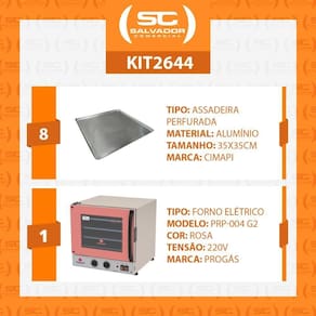 Forno Turbo Prp-004 G2 220v Rosa Progás + 8 Assadeiras Cimapi 220v MUITO IMPORTANTE:-- CONFERIR PRODUTOS NO ATO DO RECEBIMENTO. NÃO ACEITAR PRODUTOS COM EMBALAGEM VIOLADA (AMASSADO, RASGADO, ABERTO, QUEBRADO, ETC), A RECUSA DEVE SER FEITA NO ATO. Componentes do Kit:1 - Forno Turbo Prp-004 G2 220v Rosa Progás8 - Assadeiras Cimapi 35x35 Forno Turbo Prp-004 g2 220v Rosa Progás + 8 Assadeiras Cimapi Conquiste a qualidade de suas receitas com o Forno Turbo Prp-004 G2, a solução perfeita para quem busca eficiência e resultados profissionais. Ideal para confeitarias, padarias e pequenos estabelecimentos comerciais, este forno transforma a maneira como você assa, doura e gratina seus pratos. Seu sistema turbo com circulação de ar forçado garante um cozimento uniforme, essencial para massas, pães e doces perfeitos. A potência de 1.800 watts permite um aquecimento rápido, enquanto o termostato com ajuste de temperatura até 250 C proporciona controle total sobre o processo. Construído com aço inox, o Forno Turbo Prp-004 G2 oferece durabilidade e resistência para o uso diário. O timer de até 120 minutos com alarme garante que suas receitas fiquem prontas no tempo exato, otimizando seu tempo na cozinha. Além de tudo, sua eficiência energética reduz o consumo de energia. Não perca a oportunidade de simplificar seu dia a dia e surpreender seus clientes. Adquira já o seu e eleve o nível da sua produção! Especificações:- Com iluminação interna, turbina que distribui o calor uniformemente e timer;- Este forno é fabricado em aço inoxidável escovado;- Isolamento térmico com lã basáltica;- Puxador em polímero isolante de alta resistência;- Porta em vidro temperado 4mm;- Controlador de temperatura (termostato) com regulagem de 50C a 250C;- Controlador de tempo de cozimento (timer) com 120 minutos.- Aviso sonoro de tempo de cozimento;- Painel com teclas individuais para acionamento do motor (turbina) e lâmpada;- Litragem: 39 litros úteis e 56 litros totais;- Resistência 2080W;- Acompanha 4 assadeiras perfuradas 35x35cm.- Motor monofásico de 1/30CV;- Resistência blindada de 2080W;- Iluminação interna Lâmpada halógena de 35 W;- LED indicador de temperatura;- Tensão 220V;- Amperagem: 16 A;- Frequência: 50 - 60 Hz;- Medidas totais: 51cm A x 51,8cm L x 66,5cm P;- Medidas internas: 33 cm A x 46cm L x 43 cm P;- Distancia/altura entre as formas: 7cm;- Medidas da embalagem: 57cm A x 71cm L x 55cm P;- Peso Líquido: 21,5kg;- Peso Bruto: 27,1kg. Alimentação: Elétrica | Cor: Rosa | Tipo de montagem: Bancada | Capacidade: 65 L | Selecione: Forno | Produto: Forno | Função do forno: Turbo | Tipo de Forno: de Bancada | Fabricante: Progás | Voltagem: 220V