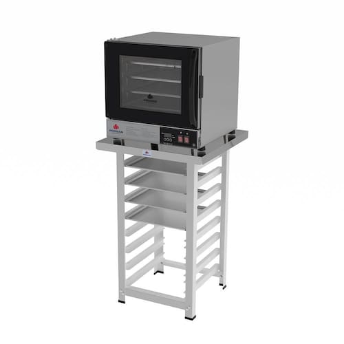 A tecnologia de convecção do forno, com seu fluxo de ar forçado, garante um assado mais rápido e homogêneo, enquanto o termostato ajustável permite um controle preciso da temperatura. Fabricado com aço inoxidável, este forno oferece alta durabilidade e resistência para o uso diário e intenso. A bancada inclusa, robusta e feita para complementar o forno, otimiza seu espaço de trabalho. Além disso, a eficiência energética do equipamento ajuda a reduzir os custos operacionais. Não perca a chance de aprimorar sua produção com este combo. Adquira já o seu e leve a qualidade profissional para a sua cozinha!