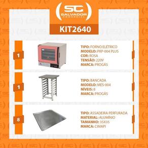 Componentes do Kit:1 - Forno Turbo Prp-004 Plus 220v Rosa1 - Bancada Mes-004 Progás8 - Assadeiras Cimapi