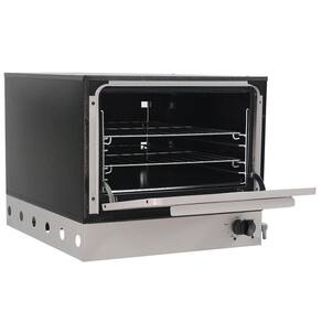 O forno possui capacidade de 98 litros, com dimensões internas de 68 x 50 x 29 cm, acompanhando 2 grelhas com limitador, ideais para otimizar o espaço e padronizar o preparo.