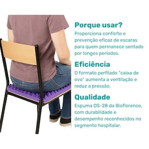 assento caixa de ovo bioflorence, almofada antiescara, assento ortopédico lilás, almofada para cadeira de rodas, espuma DS-28, almofada para cóccix