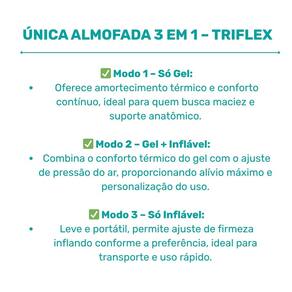 Com design inteligente e multifuncional, pode ser usada somente com gel, somente inflável ou combinando as duas funções, adaptando-se à necessidade e conforto do usuário.