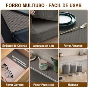 Forro flex antiderrapante Assenta unifortmente sobre prateleiras e fundo de gavetas Corte industrial com acabamento perfeito Vantagens - antiderrapante e antimofo; - flexível e resistente; - anti impacto; - fácil de usar; - fácil de recortar com tesoura ou estilete; - corte industrial ótimo acabamento; - excelente qualidade; - assenta uniformemente nas prateleiras e gavetas; - discreto e moderno; - combina com qualquer ambiente. Contém: 1 peça s Dimensões de cada peça - largura: 30cm - comprimento: 6,00 metro s Cor: cinza Material: antiderrapante 100% pvc Sugestão de uso: prateleiras e gavetas em cozinhas, quartos, closets e etc. Somos fabricantes, por isso garantimos o melhor preço e qualidade para esse produto. Um produto idealiza comercio de utilidades. Marca: Não Informado