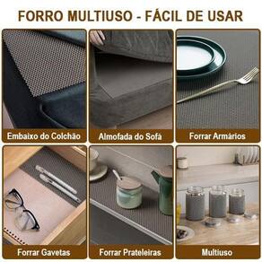 Forro flex antiderrapante Assenta unifortmente sobre prateleiras e fundo de gavetas Corte industrial com acabamento perfeito Vantagens - antiderrapante e antimofo; - flexível e resistente; - anti impacto; - fácil de usar; - fácil de recortar com tesoura ou estilete; - corte industrial ótimo acabamento; - excelente qualidade; - assenta uniformemente nas prateleiras e gavetas; - discreto e moderno; - combina com qualquer ambiente. Contém: 1 peça s Dimensões de cada peça - largura: 30cm - comprimento: 8,00 metro s Cor: cinza Material: antiderrapante 100% pvc Sugestão de uso: prateleiras e gavetas em cozinhas, quartos, closets e etc. Somos fabricantes, por isso garantimos o melhor preço e qualidade para esse produto. Um produto idealiza comercio de utilidades. Marca: Não Informado Ean: 7908975915783