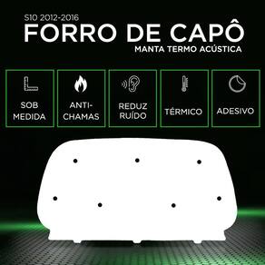 FORRO CAPÔ MANTA TERMO ACÚSTICA ANTIRRUÍDO S10 2012 A 2016 FELTRO ISOLANTE 5MM PRETO ANTICHAMAS GRUD GTC 5116