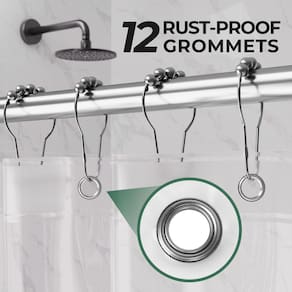 - Orifícios de metal: um total de 12 orifícios ilhós oferecem compatibilidade perfeita com uma variedade de ganchos para cortinas de chuveiro, incluindo opções decorativas. Os ilhós metálicos à prova de ferrugem, juntamente com um cabeçalho reforçado, garantem durabilidade excepcional e evitam qualquer rasgo indesejável na parte superior.