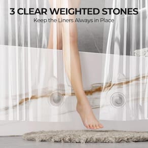 - Weighted Bottom Stones: Descubra a engenhosidade de três pedras transparentes estrategicamente posicionadas na base do forro. Essas pedras fornecem uma distribuição de peso ideal, fixando a cortina com segurança no lugar e mantendo uma distância confortável do corpo. Experimente um novo nível de conforto e conveniência no banho.