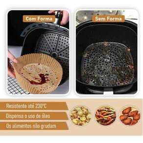 Forro De Papel Descartável Especial para Air Fryer 100 und Forro Papel Descartável Antiaderente Para Ayr Fryer Forma Resistente até 230C, não deixa os alimentos grudarem pois e antiaderente dispensando o uso de óleo.Não vaza Protege seu equipamento dos resíduos dos alimentos, gorduras e temperos.Perfeito para equipamentos de 3 a 5 litros, podendo ser utilizado no forno, microondas e panelas vaporizadoras. ATENÇÃO:NUNCA pré-aqueça o seu air fryer com o papel dentro. Isso pode queimar o papel e iniciar fumaça. Especificações:Uso: Air Fryers de 3 a 5 LitrosContém: 100 papéis descartáveisMedidas: 20 diâmetro borda x 16 diâmetro fundo x 4,5 altura Temperatura máxima suportada: 230CCor: Bege