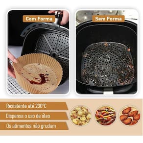 Forro De Papel Descartável Especial para Air Fryer 50 und Forro Papel Descartável Antiaderente Para Ayr Fryer Forma Resistente até 230C, não deixa os alimentos grudarem pois e antiaderente dispensando o uso de óleo.Não vaza Protege seu equipamento dos resíduos dos alimentos, gorduras e temperos.Perfeito para equipamentos de 3 a 5 litros, podendo ser utilizado no forno, microondas e panelas vaporizadoras. ATENÇÃO:NUNCA pré-aqueça o seu air fryer com o papel dentro. Isso pode queimar o papel e iniciar fumaça. Especificações:Uso: Air Fryers de 3 a 5 LitrosContém 50 papéis descartáveisMedidas: 20 diâmetro borda x 16 diâmetro fundo x 4,5 altura Temperatura máxima suportada: 230CCor: Bege