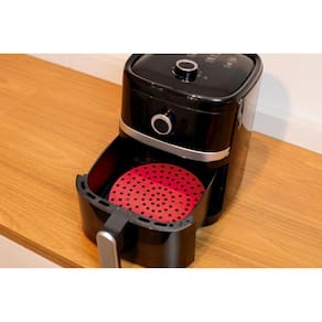 Características Gerais do produto Forro de silicone redondo para Airfryer, auxilia no preparo de refeições, evita resíduos e protege os alimetrosentos.