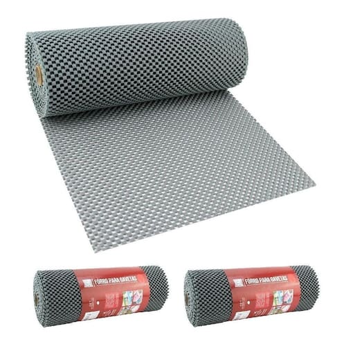 Forro Gavetas Closet Armário Cozinha Antiderrapante 9 Metros Forro para armários, gavetas, closet, banheiro. Proteja seus móveis de manchas e riscos. Fabricado em material Antiderrapante e fácil de lavar. Perfeito para ser Utilizado em prateleira, gavetas, e sobre móveis e mesas. É tão versátil que pode até ser Utilizado de jogo americano Basta cortar o forro no tamanho desejado Kit com 2 rolos Tamanho de cada rolo: 30 cm de largura x 4,5 metros de comprimento. Ean: 7890017208345