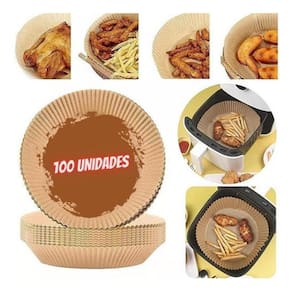 Características: Material: papel; Quantidade: 2 pacotes com 50 folhas 100 folhas no total ; Medida: 19,5cm l x 4,5cm a ; Temperatura máxima: 230ºc; Ideal para: air fryer, micro-ondas e forno elétrico.