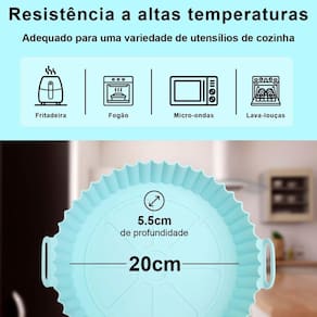 Conteúdo do pacote: 1 assadeira de silicone Tamanhos: diâmetro inferior 20,5cm, diâmetro de abertura 22,5cm e altura 5,5cm Temperatura adequada: -20c a 240c Marca: Não Informado