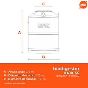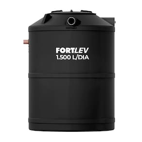 Tratamento de esgoto doméstico com eficiência e economia. O Biodigestor MAX SS Fortlev é uma estação compacta e de alta performance, capaz de tratar até 1.500 litros/dia, ideal para residências com até 9 pessoas ou comércios com até 18 pessoas.