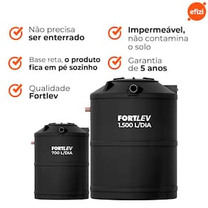 Ideal para locais sem rede pública de esgoto (chácaras, fazendas, sítios, escolas, áreas urbanas ou rurais). Possui eficiência de até 89% na remoção de carga orgânica, baixa manutenção e tecnologia exclusiva Fortlev.