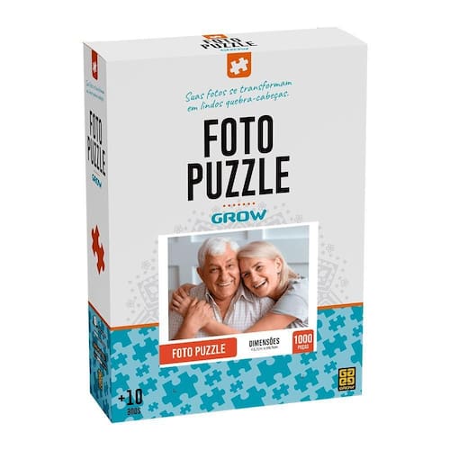 Foto puzzle personalizadosurpreenda alguém que você ama com um lindo quebra-cabeça personalizado escolha sua foto preferida, pode ser de uma viagem ou de um momento especial, e transforme-a em um lindo quebra-cabeça de 1000 peças para você montar ou presentearcomo personalizarEscolha uma imagem, a qualidade do seu quebra-cabeça dependerá da qualidade da imagem que você escolher. A foto deve ter, no mínimo 1957 x 2744 pixels de resolução. No entanto, quanto maior a resolução, melhor será o resultado, o ideal recomendado é 2936 x 4116 pixelssobre a impressãoO processo de impressão utilizado na produção do quebra-cabeça personalizado é feito na impressora jato de tinta, com acabamento fosco. As cores podem variar, vão se aproximar da imagem enviada, mas jamais serão iguais a tela do celular, do computador, ou mesmo da impressão em papel fotográfico. Você deverá selecionar um arquivo com extensão .Jpg.Prazo de entrega:após confirmação do pagamento serão necessários 15 para produção + prazo de entrega de acordo com o cepnota A foto pequena colocada na caixa do produto, pode conter o código do pedido e o nome do comprador como referência para produção. Não é opcional alterar esta informação. Tamanho da imagem : 49,7 x 69,7 cm quantidade de peças: 1008 peças dimensões da embalagem : 16,0 x 27,0 x 7,0 cm a partir de 10 anos Homologação Inmetro: CE-BRI/IQB 006352 52216/18-025 Marca: Não Informado