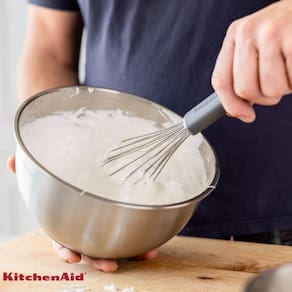 O Fouet da Coleção Clássica KitchenAid é o utensílio perfeito para incorporar ar às suas receitas, garantindo misturas mais leves, lisas e homogêneas. Versátil, é ideal para preparar merengues, chantilly, claras em neve, massas leves, cremes, maioneses, suflês e molhos, oferecendo sempre resultados impecáveis.