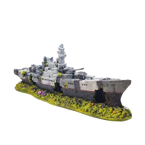 Enfeite de resina de poliéster para uso submerso em aquários de água doce ou salgada.