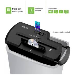 Destrói cartões de crédito e CDs , DVDs Iniciar , parar automaticamente. Proteção térmica , Proteção contra superaquecimento Remoção de geléia para frente e reverso manual para limpeza de geléias de papel Braço extensível para caber na maioria das cestas de resíduos O comprimento máximo é 38,1 centímetros Capacidade de papel triturado: 8 folhas de papel de ligação de 9 kg