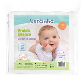 Sobre o Produto: - Contém 5 Unidades - Medidas Aproximadas: 60 cm x 60 cm - Tecido: Fralda 100% Algodão - Tecido Duplo - Extra Absorvente - Marca: Bercinho