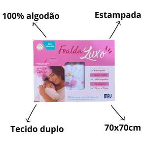 A linha luxo é versátil e ajuda as mamães no cuidado dos bebês. Podem ser usadas na hora de dormir, como protetor contra o vento e sol, base de trocador, para forrar qualquer superfície quando necessário, entre outros. Seu tamanho é excelente, pois possibilita inúmeras utilizações como: fraldinha para cochilar, de ombro, para proteger no bebê conforto ou carrinho, Possui estampas lindas, delicadas e alegres. Entre outras finalidades incríveis. É a nossa linha de maior qualidade, confeccionada com tecido duplo 100% de fibra de algodão proporciona conforto e maciez para a pele sensível do bebê. Tecido duplo e muito mais macia. As Fralda de Pano é mais do que essencial no enxoval do bebê. Esse kit com 5 unidades de fralda com estampas, é nota 10 no que diz respeito a relação custo X benefício. Nossa caixa de fraldas luxo é coringa para ser Utilizado em muitas funções, pois é grande, com tecido duplo e possui estampas lindas Principais Características: Quantidade: 5 Fralda de Pano Luxo Estampada Medidas: 70cm x 70cm Tamanho ideal Tecido Duplo Extra absorvente ou seja, existe duas camadas para maior durabilidade Extra Absorvente Composição: 100% Algodão macio e confortável Cor: Rosa, Azul ou Neutra Item super VERSÁTIL. para enrolar o bebê em forma de charutinho para acalmá-lo. para forrar superfícies em passeios. para cobrir o bebê conforto e/ou carrinho na hora da soneca em passeios. Sugestões de uso: Proteger sua roupa durante a amamentação Secar o bebê Limpar o bebê durante a amamentação Segurar o bebê durante o sono Cobrir o bebê-conforto ou o carrinho Para usar sobre o trocador E o que mais você precisar Dica: é um ótimo presente Estampa enviada para MENINA. Marca: Não Informado