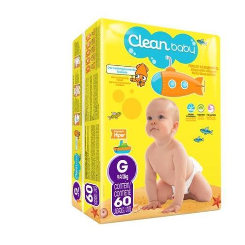 Fralda Descartavel G com 60un Clean Baby 9 A 13KG