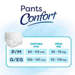 Características Principais do Produto: Marca: Tena Tamanho: G/EG Gênero: Unissex Linha do Produto: Pants Confort Capacidade de Absorção da Incontinência Urinária: Moderada/Severa