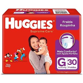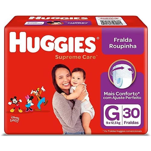 A fralda Huggies Supreme Care conta com a tecnologia exclusiva Xtra-flex, que mantém a fralda ajustada e fléxivel ao corpo do bebê mesmo em movimento. Possui canais de absorção em formato de X que ajudam a distribuir melhor o xixi e dão mais conforto ao bebê, evitando quedas ou passos em falso por causa da fralda cheia. Essa tecnologia está disponiveis do tamanho M ao XXG e em todas as embalagens da linha Supreme Care formato aberto. Possui sistema de ajuste flexível na cintura, barreias e orelhas elásticas, para garantir total ajuste ao corpo do bebê e maior conforto, também conta com cama externa suave e distribuição mais rápida e uniforme. As fraldas da Huggies Supreme Care possuem uma camada Maxi Sec com alto poder de absorção, barreiras antivazamentos e formato anatômico, que garantem conforto para seu bebê por até 12 horas. Indicação Fralda Huggies: Ideal para bebês. Características Fralda Huggies: Tecnologia Xtra-flex. Formato dos canais absorveção: X. Linha: Supreme Care Roupinha Mega. Marca: Huggies. Compre agora essa fralda para seu bebê As imagens do site são ilustrativas, podendo variar a percepção de cor conforme a iluminação do seu monitor. O vídeo sugerido tem apenas o intuito de ajudar o entendimento. São de canal aberto, podendo não representar o produto ou atividade especifica. Mais informações sobre as negociações. Veja os termos e condições de uso do site.
