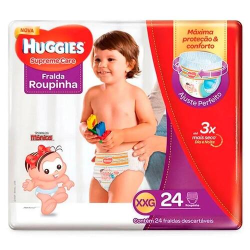 A Fralda Descartável Turma Da Mônica Roupinha traz todos os benefícios da linha Supreme Care em um formato muito mais simples e fácil de usar. Desenvolvida com exclusiva tecnologia MaxiSec, absorve o xixi e mantém a pele até 3x mais seca. Além disso, oferece máximo conforto e proteção da barriguinha até as costas com cintura elástica.