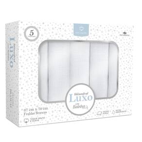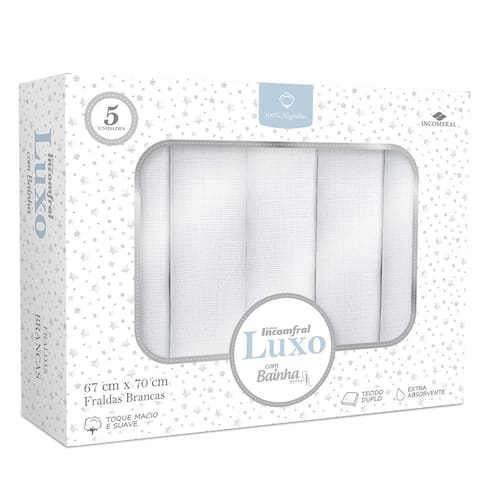 Características: - Contém 5 Unidades - Medidas Aproximadas: 67 cm x 70 cm - Tecido: 100% Algodão - Acabamento em Bainha - Marca: Fraldas Incomfral
