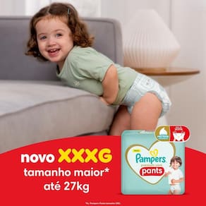 Pampers Premium Care Pants com cintura elástica 360 se adapta ao corpinho do bebê para um ajuste perfeito. A fralda calça Premium Care Pants tem uma cobertura suave e respirável para oferecer o nosso maior cuidado com a pele do seu bebê e loção hipoalergênica que ajuda a prevenir assaduras. A fralda calça Pampers Premium Care Pants é fácil de vestir e trocar, mesmo quando o bebê está em movimento, trazendo maior liberdade de movimento para que seu bebê possa brincar sem interrupções.