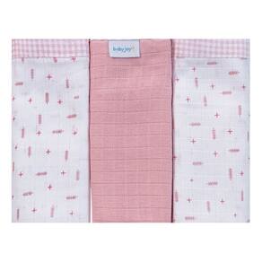 Características: - Contém 3 Unidades - Medidas Aproximadas: 68 cm x 67 cm - Tecido: 100% Algodão - Acabamento : Com Bainha e Debrum - Marca: Baby Joy