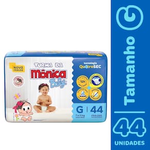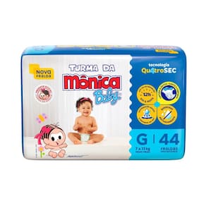 A Turma da Mônica Baby uniu proteção e conforto em uma nova opção de fralda, para garantir que seu bebê cresça feliz e tenha as melhores lembranças da sua infância. A Nova fralda Turma da Mônica Baby possui a nova Tecnologia QuatroSec para que ele fique calmo, tranquilo e seguro durante o dia e a noite toda. Conta com um exclusivo sistema de canais que distribui mais rápido o xixi, barreiras anti-vazamento e uma fina camada extra que ajuda a manter o bebê sequinho por até 12 horas, além de cintura elástica que proporciona um perfeito ajuste no corpinho.