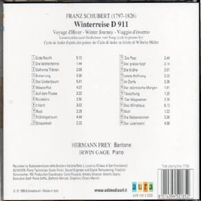 1. Gute Nacht 2. Die Wetterfahne 3. Gefrorne Trnen 4. Erstarrung 5. Der Lindenbaum 6. Wasserflut 7. Auf dem Flusse 8. Rckblick 9. Irrlicht 10. Rast 11. Frhlingstraum 12. Einsamkeit 13. Die Post 14. Der Greise Kopf 15. Die Krhe 16. Letzte Hoffnung 17. Im Dorfe 18. Der strmische Morgen 19. Tuschung 20. Der Wegweiser 21. Das Wirtshaus 22. Mut 23. Die Nebensonnen 24. Der Leiermann Marca: Não Informado