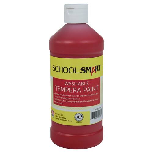 School Smart Tinta têmpera lavável, vermelha, frasco de 1 litro