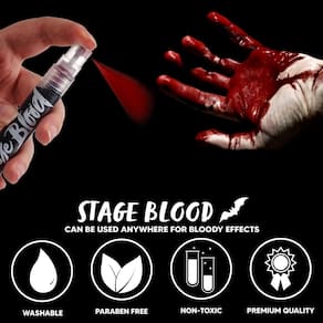 - Fácil de usar. O design prático do spray push-on permite o controle preciso e a distribuição uniforme do sangue falso, criando efeitos sanguíneos realistas com facilidade. Eleve seus efeitos especiais com nosso Spray Stage Fake Blood. Obtenha respingos de sangue, feridas ou outras marcas sangrentas realistas que impressionarão seus amigos.