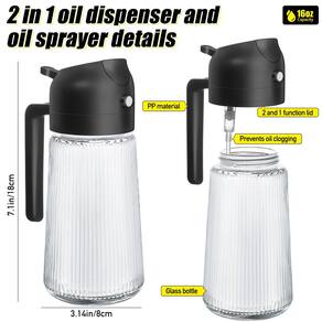 - Materiais de alta qualidade - nosso dispensador de óleo 2 em 1 e pulverizador de óleo são feitos de vidro sem grafite e BPA, que é inquebrável e garante segurança de grau alimentício, as tampas e os bicos das garrafas de óleo são feitos de material PP, que é forte e durável, o vidro transparente permite distinguir facilmente os condimentos nas garrafas, o que é fácil de usar e gerenciar.