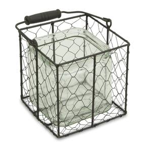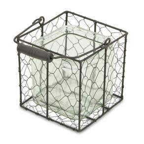 Frasco de vidro quadrado Cheung's 15S002BRL em cesta de arame marrom