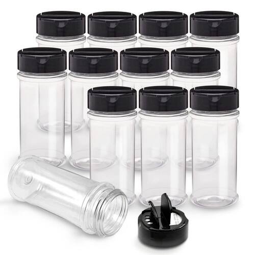 - Conjunto econômico: o pacote inclui 12 peças de frascos de tempero de plástico seguros de 155 g com tampas de parafuso pretas para atender às suas necessidades diárias.