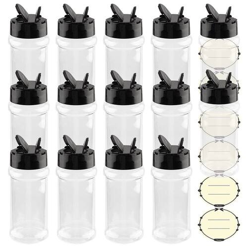 - Pacote: 14 frascos de tempero de plástico vazios com tampas de coqueteleira e etiquetas graváveis, os corpos das garrafas podem ser rotulados para ajudar você a se manter organizado
