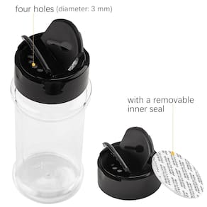 - Materiais: Feito de plástico PET de grau alimentício, garrafas de plástico transparentes confiáveis e leves permitem que você tenha uma aparência clara de especiarias, não adequado para líquido quente ou amostra quente e recomendamos colocar na máquina de lavar louça