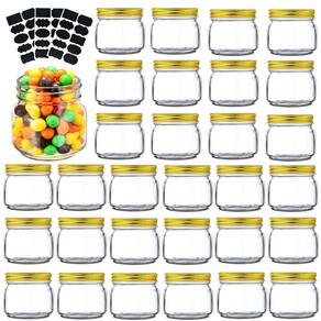 Frascos de vidro de 227 g – Conjunto de 30 recipientes de vidro feito de vidro de alta qualidade que resiste a rachaduras e quebras; 100% seguro para alimentos e sem grafite para armazenamento saudável de alimentos e beber bebidas; maior visibilidade, permitindo que você veja facilmente o conteúdo dentro; a tampa de metal rosqueada mantém as bebidas com sabor fresco; 30 etiquetas tornam esses frascos de vidro para armazenamento de alimentos com tampas um item clássico ideal. ferramenta organizacional feita; Multiuso para enlatamento, armazenamento e fins decorativos; fácil de usar e limpar, lavável na lava-louças. Pacote: Conjunto de 30 frascos de vidro Mason MATERIAL: Corpo de vidro com tampas douradas Capacidade de armazenamento: 227 g = ½ litro = ¼ litro ALTAMENTE DURÁVEL: Corpo de vidro resistente + vedações de tampa hermética para conserva fresca Seguro para louça: super fácil de limpar COR: transparente/vítreo - Qualidade premium: o pote de conservas Rainforce de 227 g é feito de vidro de alta qualidade que resiste a rachaduras e quebras. O vidro desses frascos de vidro é 100% seguro para alimentos e sem grafite para armazenamento saudável de alimentos e bebidas bebidas. Para sua conveniência, estes pequenos frascos de vidro para armazenamento de alimentos com tampas também são projetados para serem laváveis na lava-louças - Design clássico: o design cristalino e suave desses frascos de vidro garante a maior visibilidade possível, permitindo que você veja facilmente o conteúdo dentro. Cada pequeno pote envolve uma tampa de metal rosqueada com forro de plastisol que garante uma vedação hermética, que manterá as bebidas com sabor fresco e evitará que alimentos secos fiquem estragados - Armazenamento classificado: estes frascos reutilizáveis de 30 peças vêm com 30 etiquetas, o que tornará esses potes de temperos uma ferramenta organizacional classificada ideal para tudo, desde picles caseiros e geleias a especiarias e ervas a cosméticos ou velas caseiras. Perfeito para entusiastas de conservas e conservas - ampla variedade de uso: os frascos multifuncionais de 1/2 litro são úteis para enlatamento, armazenamento e fins decorativos. Da sua despensa ao mundo da culinária experimental, esses pequenos frascos de vidro são perfeitos para o ambiente criativo e incomum, e também são a tela perfeita para enfeitar com decorações de artes e artesanato, lembrancinhas de casamento e festas e outros projetos de bricolage - FÁCIL DE USAR/LIMPAR: os frascos regulares de geleia de boca têm uma abertura de 6,3 cm de diâmetro para enchimento conveniente de frutas, vegetais, ervas e especiarias. A ampla abertura também permite fácil acessibilidade ao fundo do frasco para uma limpeza fácil e completa, não importa se a máquina de lavar louça ou a mão com uma esponja