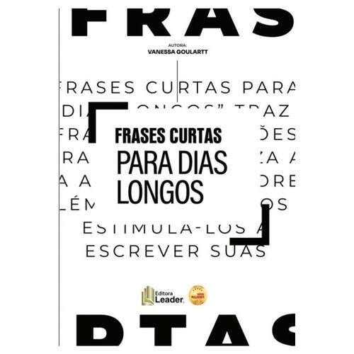 O que buscar em um livro de frases?Como frases podem transformar o nosso dia?Como consigo traduzir em palavras o que sinto e penso?Estes questionamentos estão presentes em “Frases Curtas para Dias Longos”, da atriz e jornalista Vanessa Goulartt. A publicação traz frases que podem ser lidas de maneira aleatória, como um livro de consulta. Quando respiramos fundo, nos conectamos com o que há de melhor no Universo. Abrimos uma página que nos traz não uma resposta, mas respiros por meio de frases. Respiros são fundamentais; sem eles, as respostas ficam cada vez mais distantes. “Frases Curtas para Dias Longos” também pode ser lido de maneira sequencial, trazendo um caminho de frases a ser percorrido pelo leitor. A proposta do livro é que o leitor embarque na viagem das frases e sinta-se estimulado a criar suas próprias frases. Autoconhecendo-se a cada frase, use as palavras como bote salva-vidas, cajado, escudo, cobertor, espelho, lanterna, estrela e outras infindáveis formas de vê-las. É um rico exercício de humanidade e sensibilidade. Que o mundo esteja cada vez mais repleto de fases e frases.Esse livro faz parte do Selo Editorial Série Mulheres, tem como objetivo transformar histórias reais, casos práticos e metodologias em projetos coletivos e autorais. Nosso propósito é registrar o maior número de mulheres na literatura através do selo editorial Série Mulheres. Nossa ação está alinhada com o ODS 5, que trata da igualdade de gênero e empoderamento de todas as mulheres e meninas e sua comunicação fortalece a abertura de oportunidades para a liderança em todos os níveis de tomada de decisão na vida política, econômica e pública.